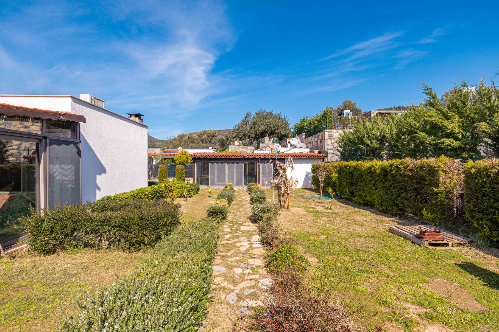 Yalıçiftlik’te doğanın içinde hissedeceğiniz, müstakil yaşamın ve geniş bahçenin keyfini süreceğiniz tam müstakil villa