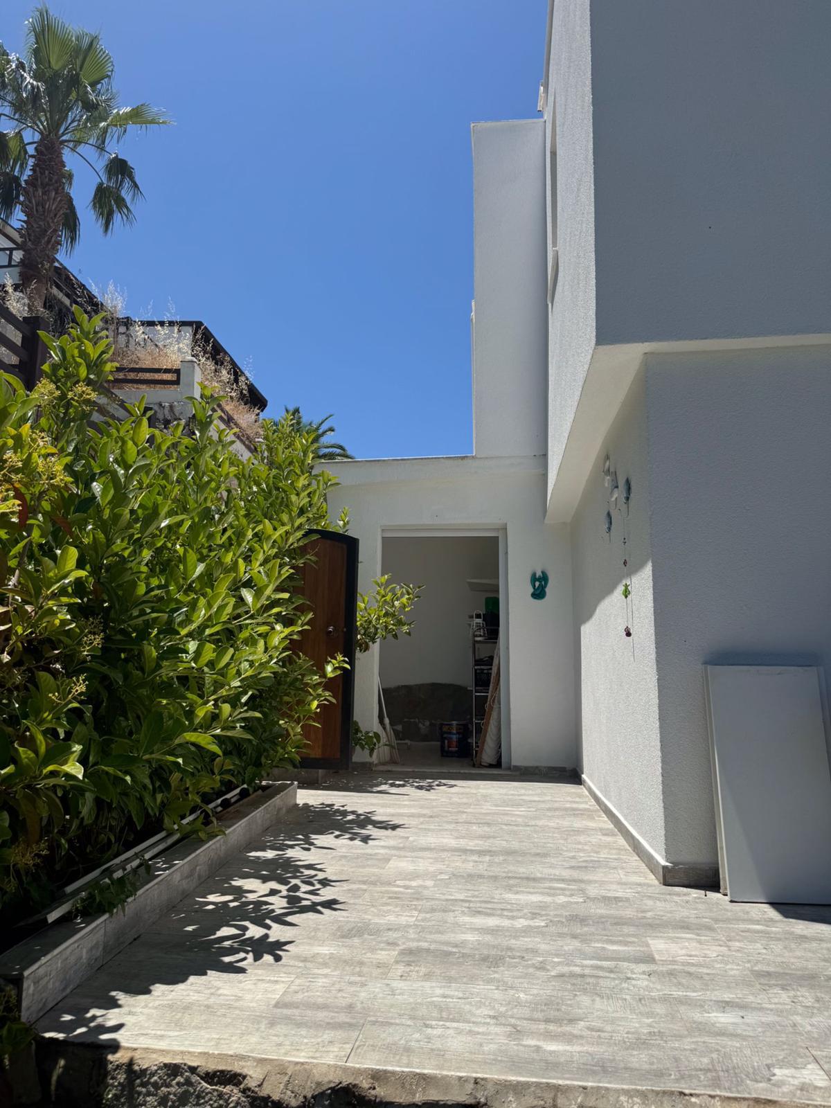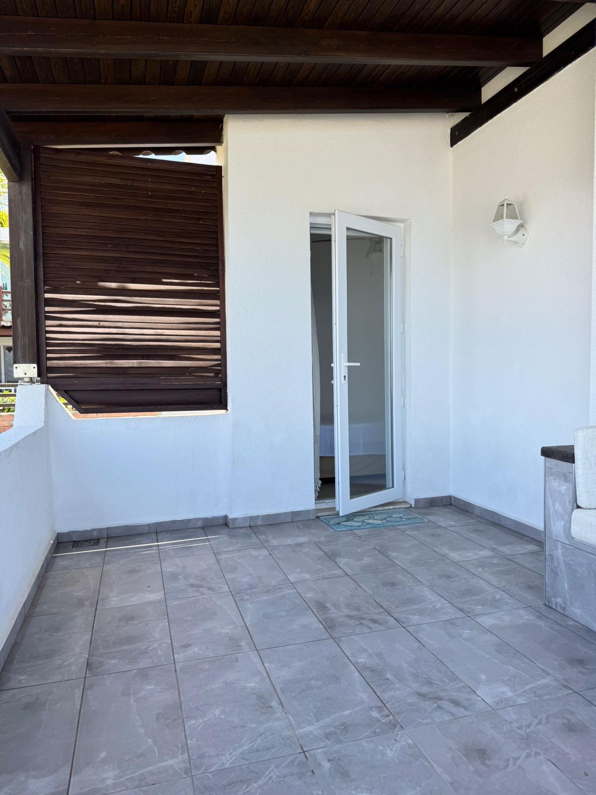 Salondan, bahçe oturumuna direkt çıkılıyor. Dışarıda, depolama alanı ve gölgeli oturma alanları yer alıyor.